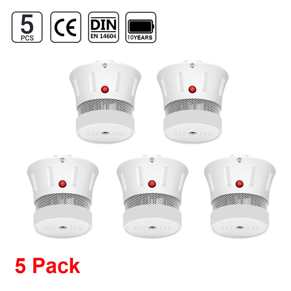 Home » Access Control , Fire Protection , First Aid Kits , Security Alarm , Smart Card System » Promo CPVan 5pcs/Lot Smoke Detector EN14604 CE Certified Smoke Alarm 10 Year Battery Wireless Sensor Detector for Home Alarm Systems