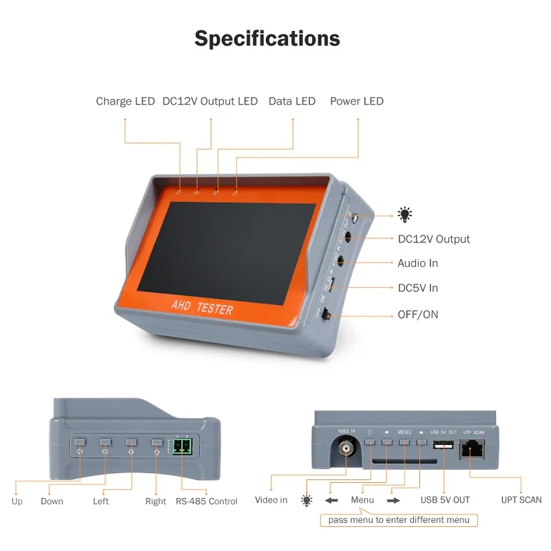 Home » Access Control , First Aid Kits , Security Alarm , Smart Card System , Transmission » Limited 4.3 Inch HD AHD CCTV Tester Monitor AHD 1080P Analog Camera PTZ UTP Cable Tester 12V1A Output