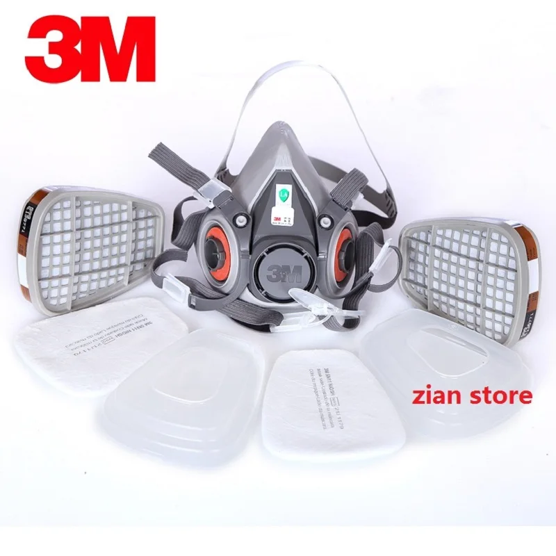Promo 3M 6200 Chemical Gas Mask 8 in 1 Painting Spray Respirator with Anti-Fog Glasses Pesticide Formaldehyde Particles Half Mask